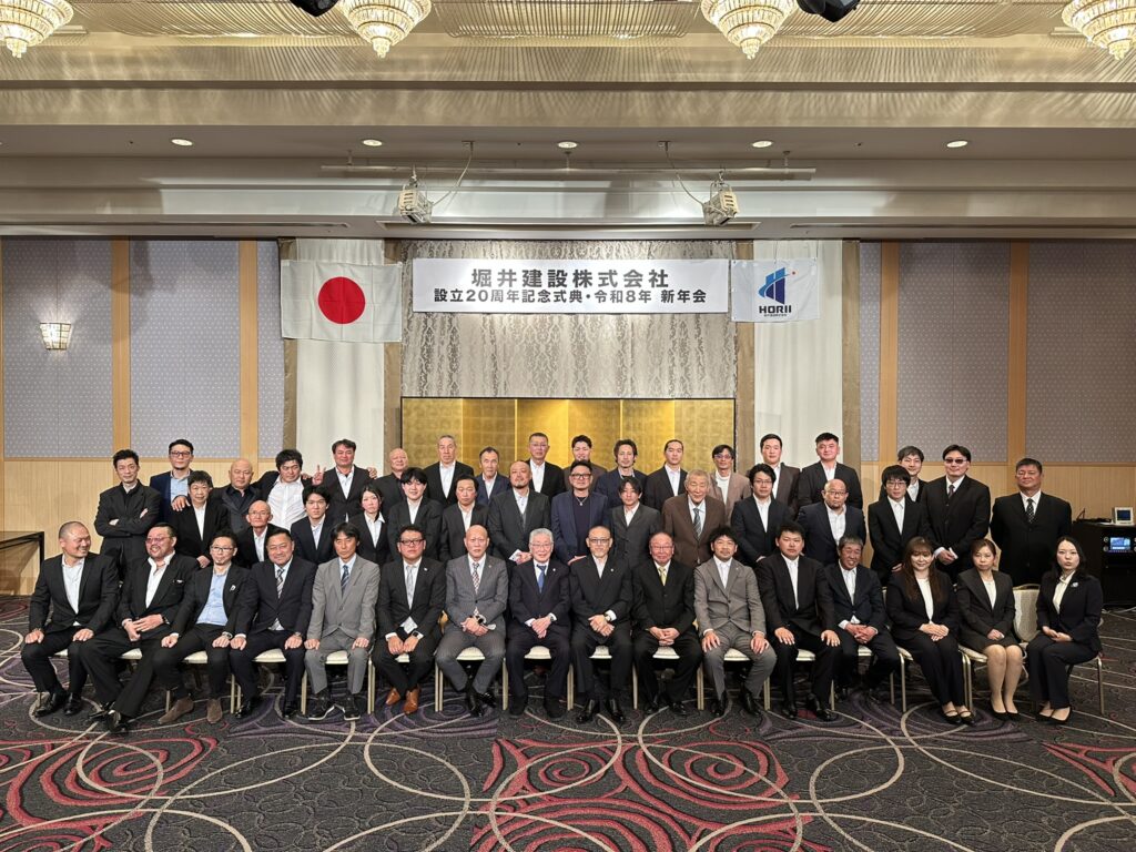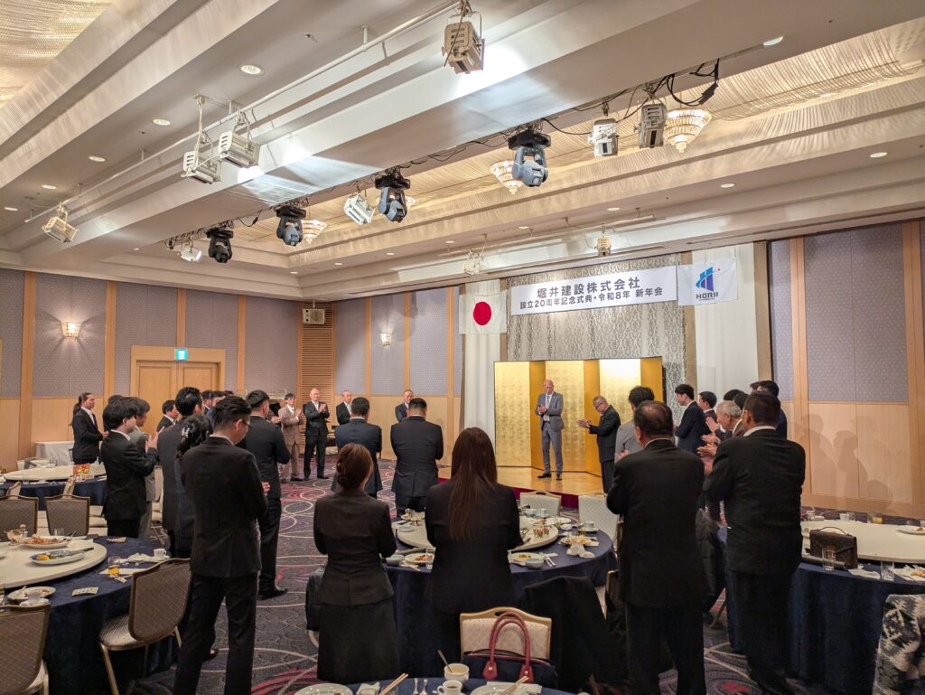 当社では、日頃の感謝を込めて新年会を開催するとともに、節目となる設立20周年記念式典を合同で執り行いました。
